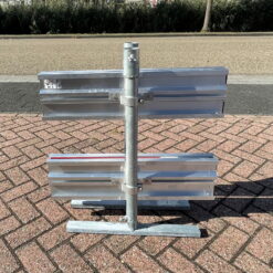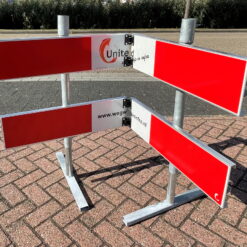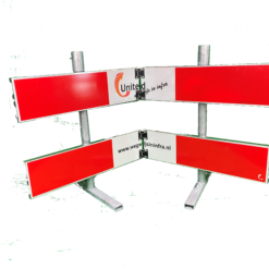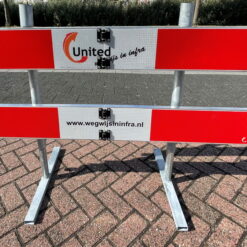 Er is een mogelijkheid om twee rvv verkeersborden bovenaan het hek en naast elkaar te plaatsen, omdat de opbouw van het afzethek hiervoor gemaakt is. Hierbij is de voorkeur dat de rvv borden 1,5 meter en minimaal 1,2 meter boven wegdek worden geplaatst. Hier zijn voorbeelden van rvv verkeersborden te vinden.