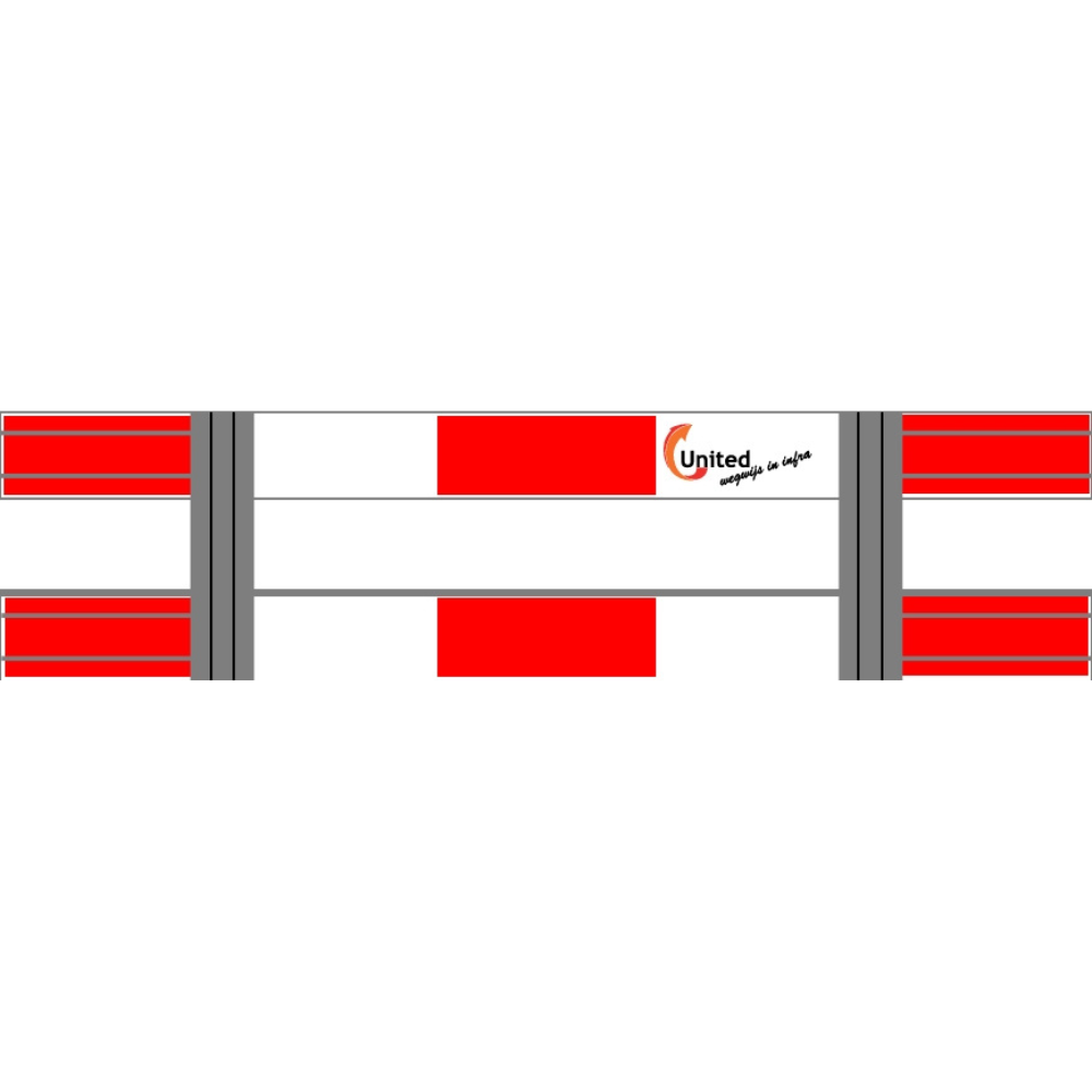Verkeershek voorzien van sleuf ( glasvezel model ). Sleuf heeft een lengte van ong. 50cm, waardoor de stevigheid van de plank niet verminderd. Het gedeelte tussen de U-profielen is niet doorgetrokken met een sleuf.