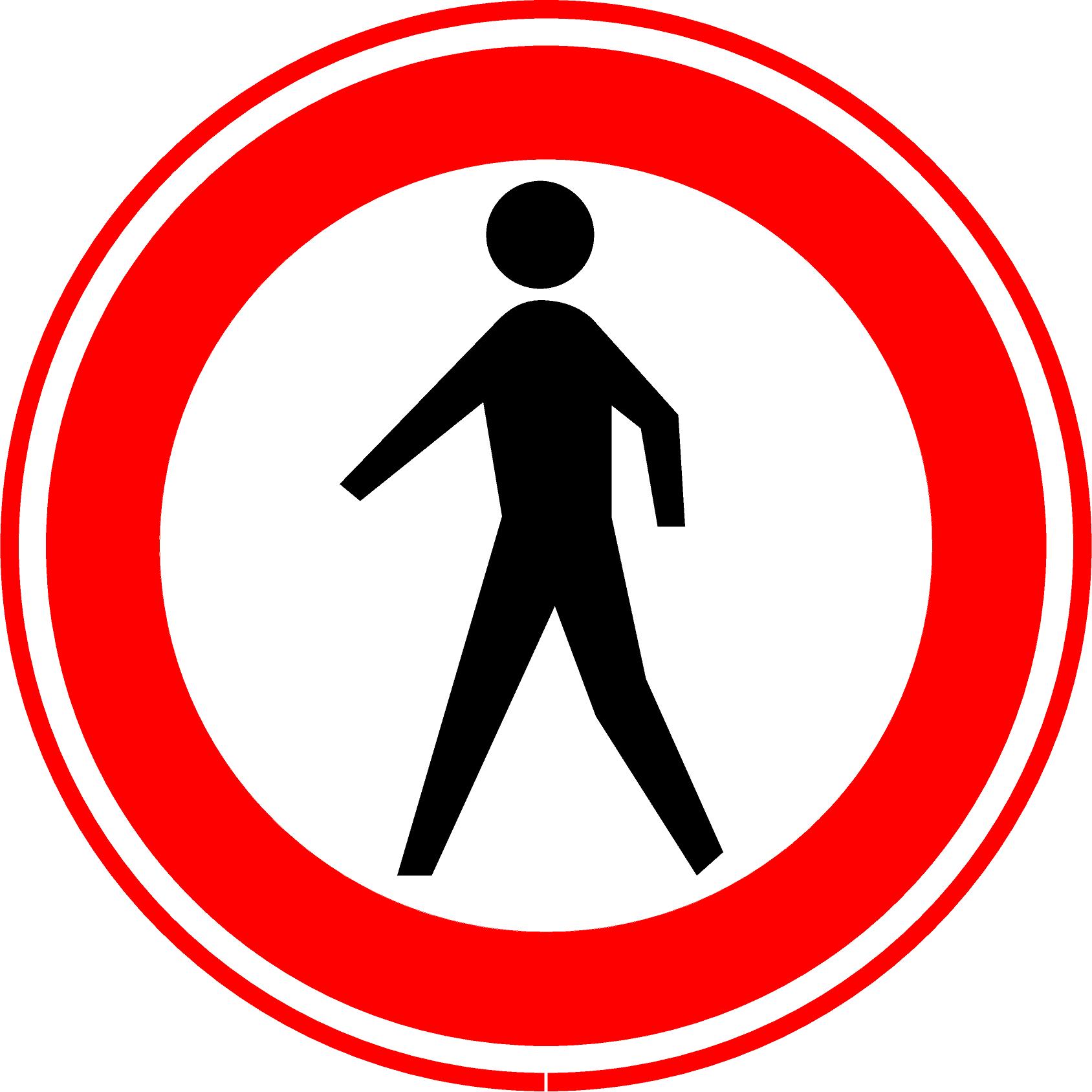 Het bord is opgenomen in het officiële Reglement Verkeersregels en Verkeerstekens (RVV) en herkenbaar aan het zwarte voetganger-symbool in een rode cirkel.