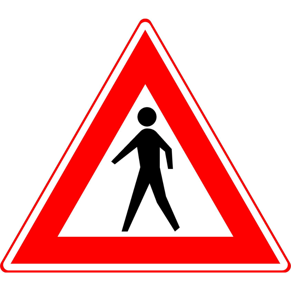 Dit officiële RVV verkeersbord J23 waarschuwt voor een voetgangers oversteekplaats.